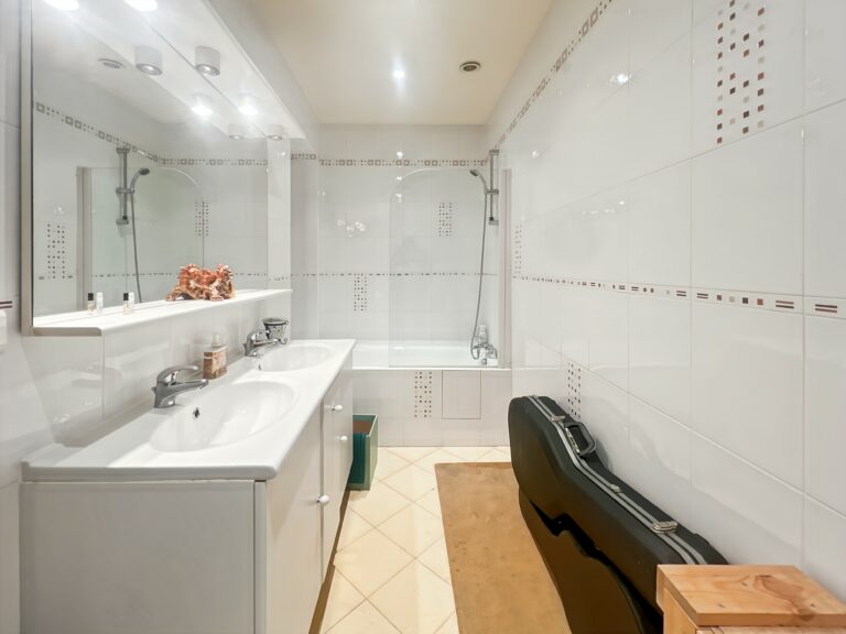 L’ensemble de l’appartement bénéficie d’une belle hauteur sous plafond et d’une luminosité importante toute la journée.