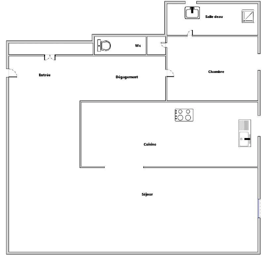 Le bien se compose d’un séjour lumineux de 18,53 m² avec cuisine semi-ouverte,