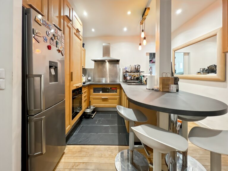Le charme de l’ancien est omniprésent avec parquet, moulures et belle hauteur sous plafond, créant une atmosphère chaleureuse et élégante.