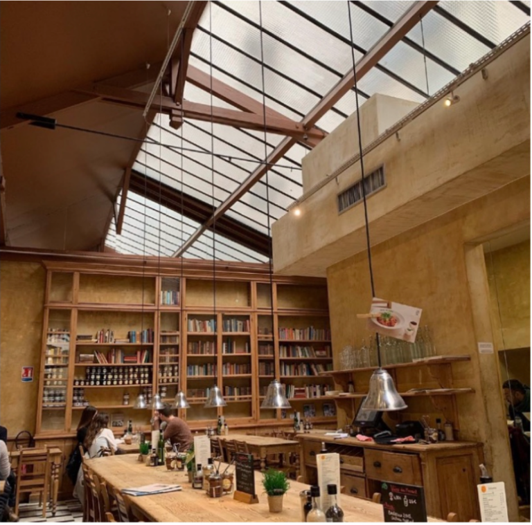 Ce bien se développe sur deux niveaux. Au rez-de-chaussée, d’une surface d’environ 150 m², il bénéficie d’une belle vitrine sur rue ouvrant sur une première salle lumineuse, prolongée par une seconde grande salle entièrement sous verrière, apportant un cachet exceptionnel et une atmosphère singulière. Ce niveau comprend également une cuisine avec extraction (350), parfaitement adaptée à une activité de restauration, ainsi que des sanitaires.